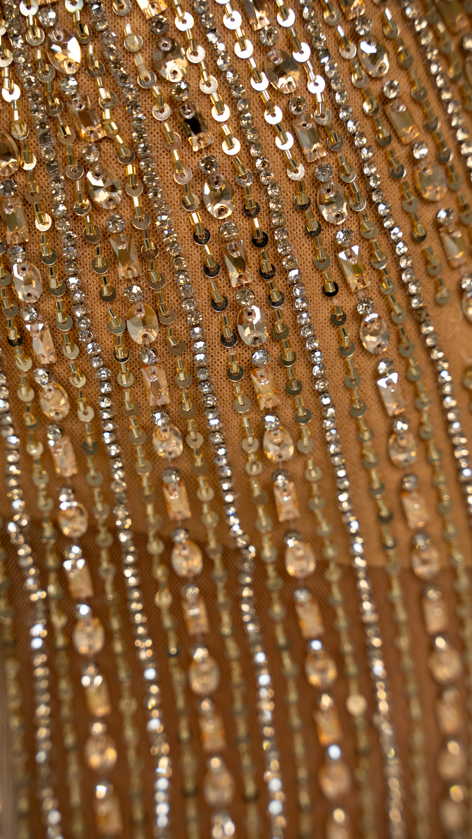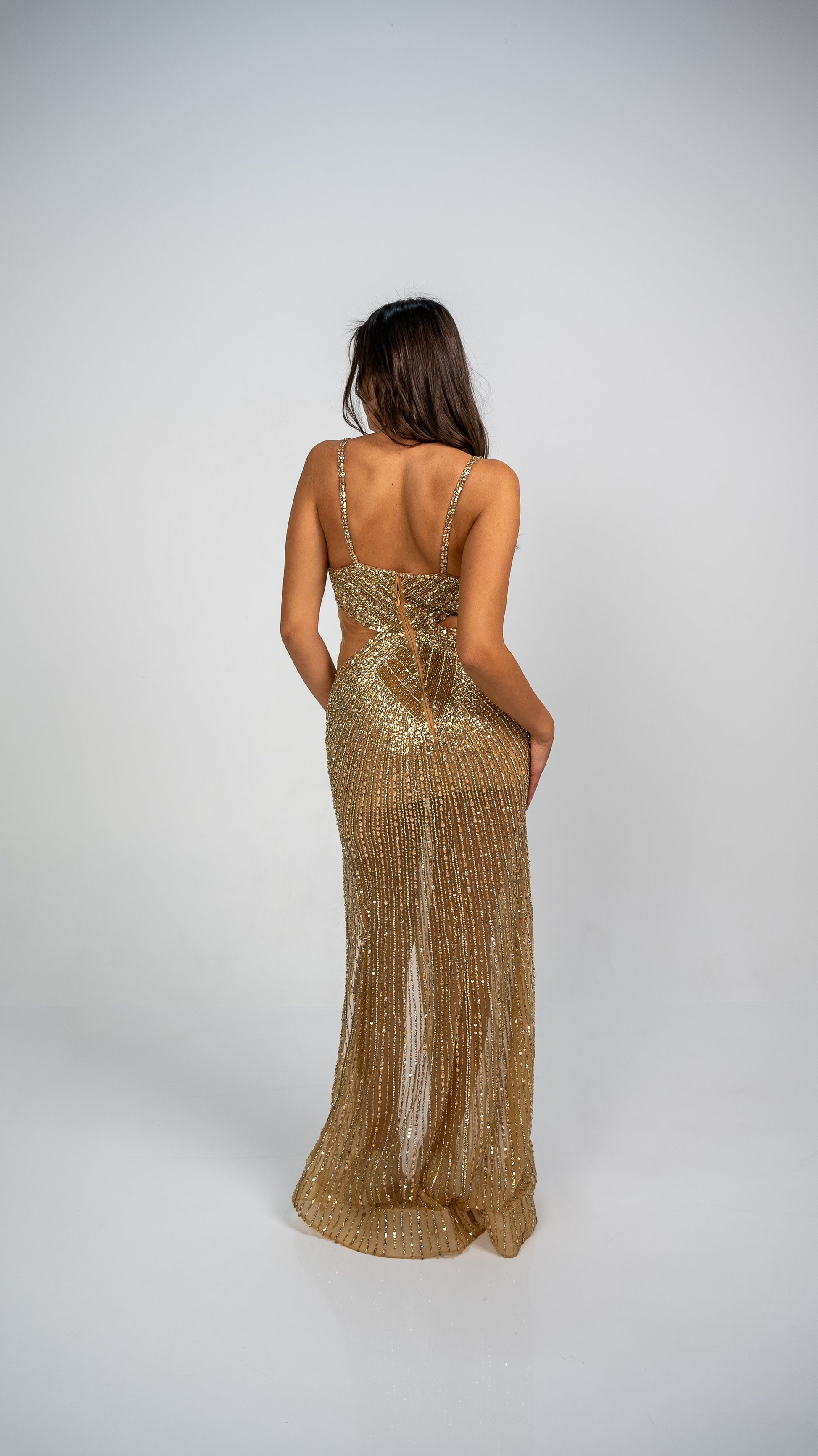 Be in your godess aura with this beautiful rhinestone dress available in gold and silver.